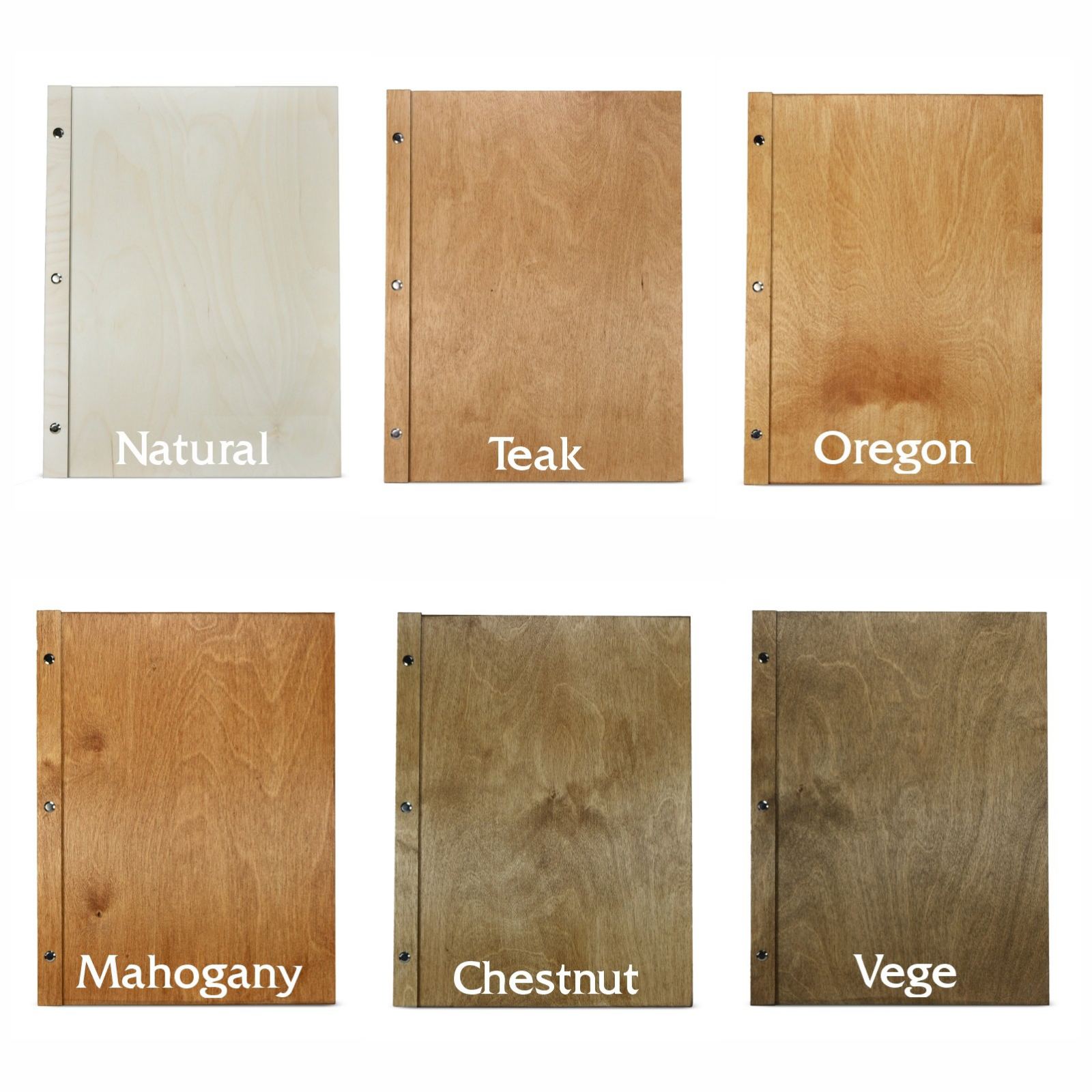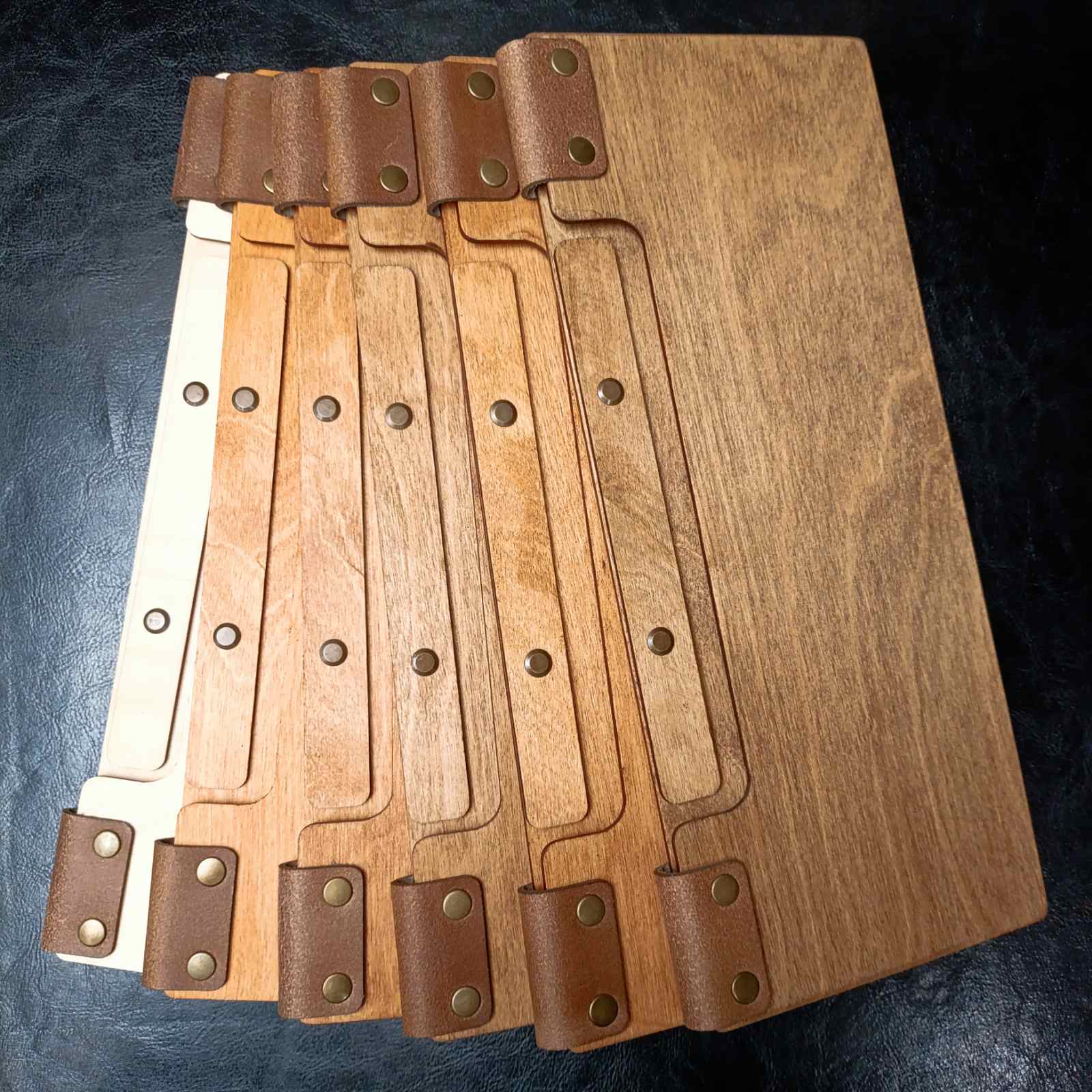 It undergoes a special staining process one Wooden Menu Cover Wine List in the Wenge, Teak, Chestnut, Mahogany,Oregon and Natural shade, giving it a refined and timeless aesthetic. To enhance its durability, a waterproofing oil coating is applied, ensuring resistance to moisture and wear for long-lasting use.