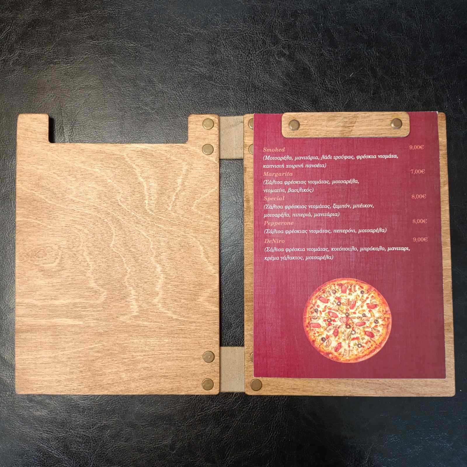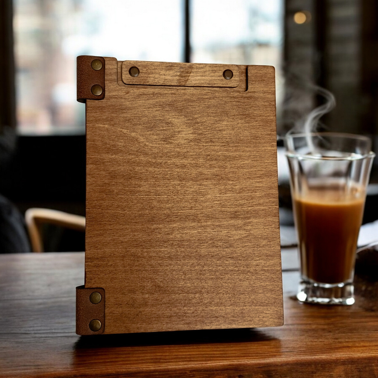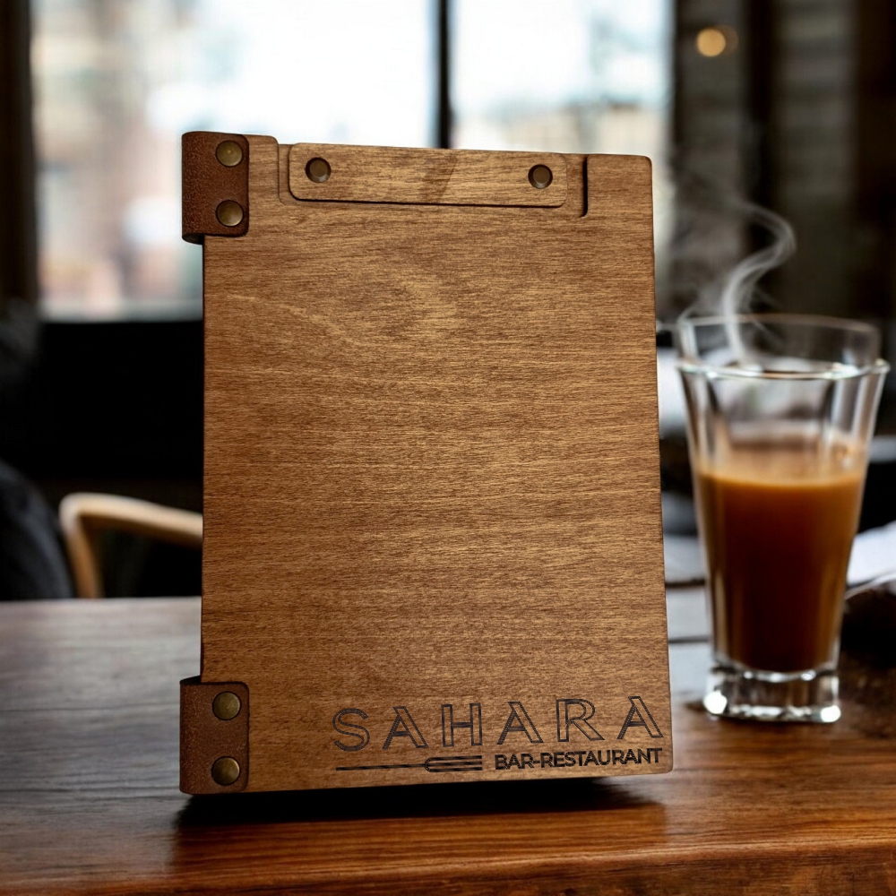 It undergoes a special staining process one Wooden Menu Folder A5 in the Wenge, Teak, Chestnut, Mahogany,Oregon and Natural shade, giving it a refined and timeless aesthetic. To enhance its durability, a waterproofing oil coating is applied, ensuring resistance to moisture and wear for long-lasting use.